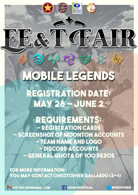 General quota of 100 pesos per team must be paid to Jon Karel Del Rosario (GCASH: 09202776602). For more info about the payment, please refer to Payment Guidelines
