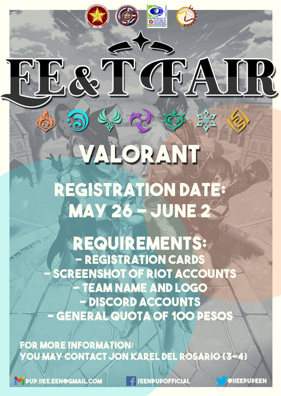General quota of 100 pesos per team must be paid to Jon Karel Del Rosario (GCASH: 09202776602). For more info about the payment, please refer to Payment Guidelines